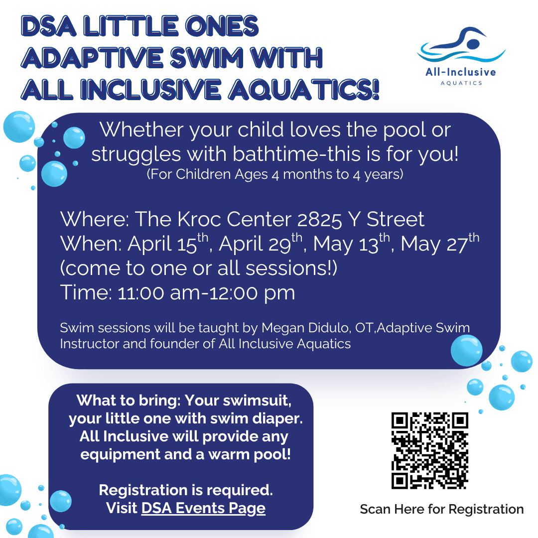 Join the Little Ones Playgroup for a wonderful adaptive swim opportunity with All Inclusive Aquatics at the Kroc Center. There will be 4 sessions-attend one or all!